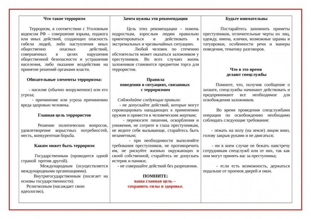 Страничка безопасности - Профилактика экстремизма и терроризма