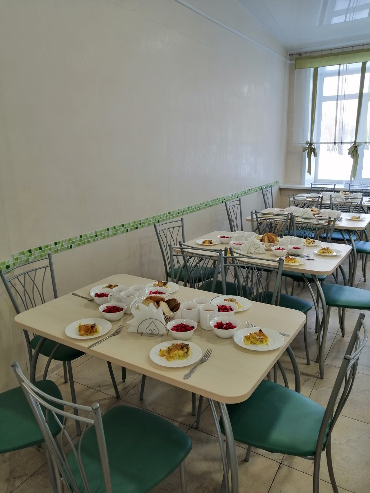 В лицее имеется столовая на 270 посадочных мест. Помещения и оборудование пищеблока соответствует современным требованиям. Имеются следующие помещения: - цех первичной обработки овощей; - холодный цех (цех приготовления салатов); - мясной цех; - кондитерский цех; - горячий цех; - цех обработки яиц; - склады для посуды и продуктов; - помещение для уборочного инвентаря; - моечные столовой посуды и кухонного инвентаря; - душевая.